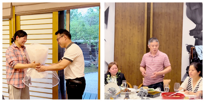 經(jīng)過一天的相處,各小家庭之間都增進(jìn)了了解,晚上,徐總特意準(zhǔn)備了豐盛的晚宴,大家也早已和諧融洽,談笑風(fēng)生,暢所欲言,分享感悟。席間,家屬們鼓勵并支持他們的“愛人”、“爸爸”全身心投入到未來的工作中,為前程的發(fā)展盡一份家屬的綿薄之力。
