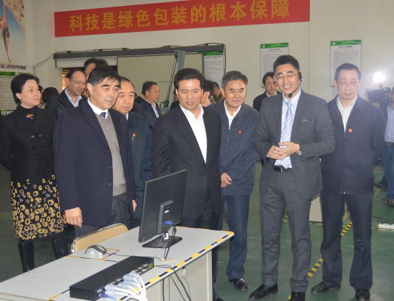 11月15日,全國(guó)政協(xié)副主席王正偉率全國(guó)政協(xié)人口資源環(huán)境委員會(huì)調(diào)研組來我司,就“治理過度包裝,促進(jìn)綠色生產(chǎn)消費(fèi)”進(jìn)行專題調(diào)研。省政協(xié)副主席楊新力、市政協(xié)主席周敏煒、市政協(xié)秘書長(zhǎng)顧韜、市經(jīng)信委副主任黃麗俠和新吳區(qū)政協(xié)主席劉蓓紅等參加活動(dòng),前程包裝徐平董事長(zhǎng)、徐穎總經(jīng)理陪同講解。