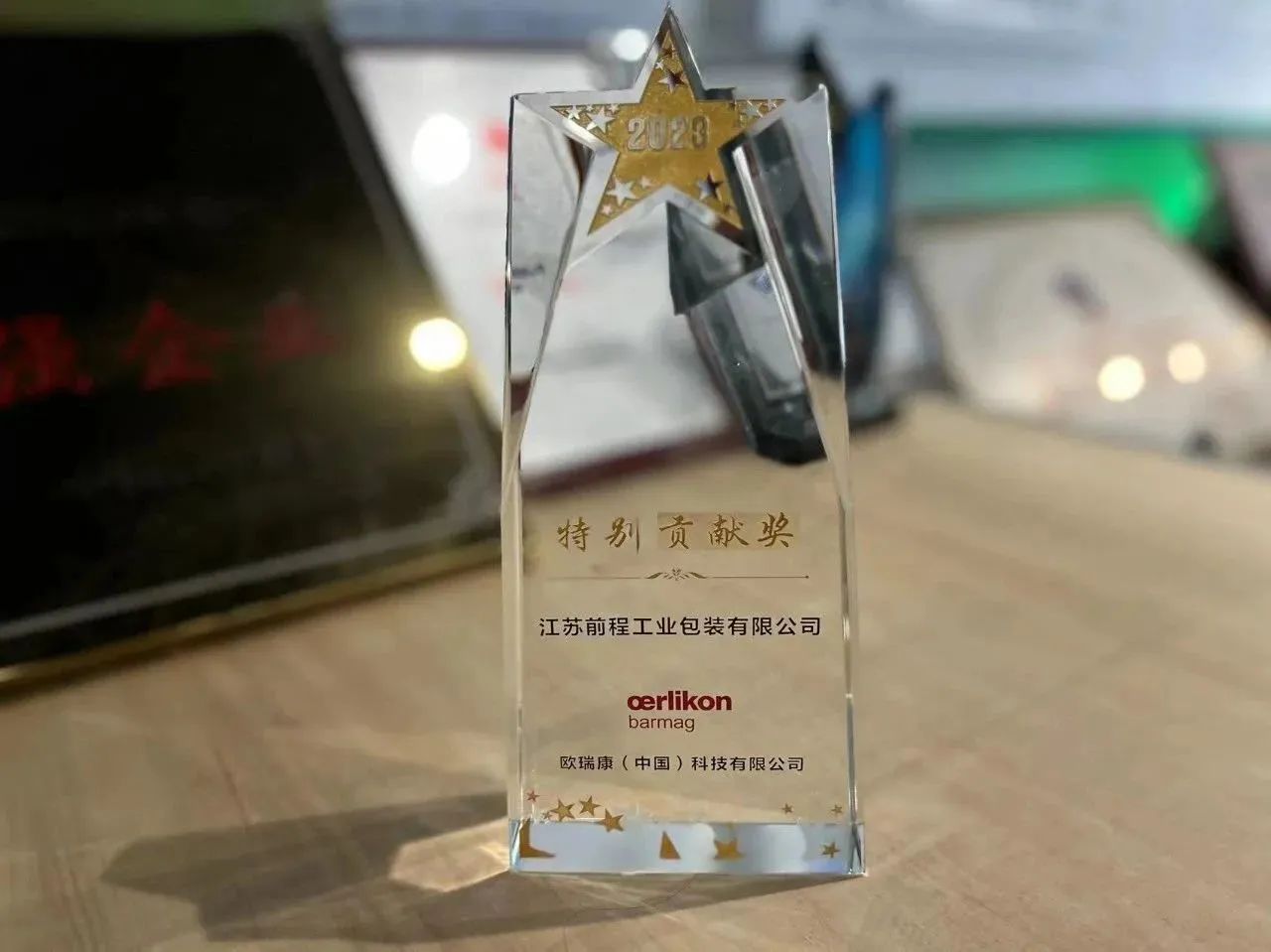 2023年11月3日,在ORK 2023供應商會議上,客戶對前程包裝公司多年來提供高質量的產品和卓越的服務支持,尤其在去年疫情期間,攻堅克難,鼎力相助,持續保障木包裝箱的及時供應充分肯定,給予頒發“特別貢獻獎”。前程包裝董事長徐平先生出席會議并代表領獎。