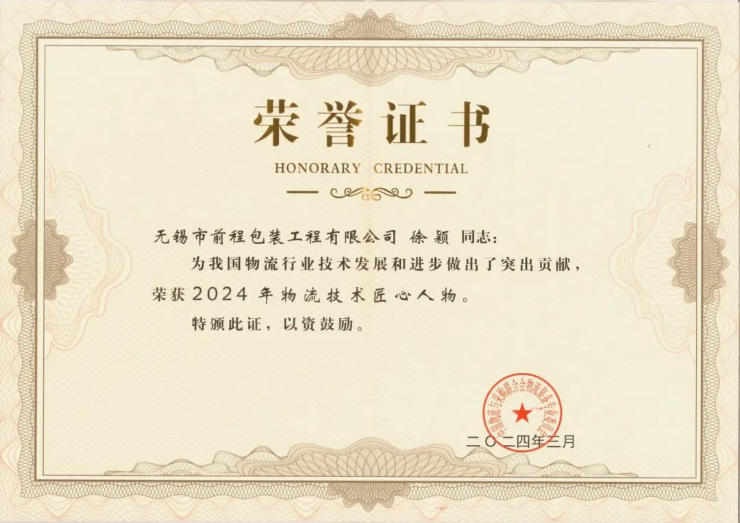 近年來,徐穎總經(jīng)理帶領技術(shù)研發(fā)團隊組建了江蘇省綠色智能包裝工程技術(shù)研究中心,并成功通過省級工程技術(shù)研究中心認定,對我國綠色智能包裝技術(shù)及企業(yè)創(chuàng)新發(fā)展注入新動力。通過開發(fā)新的代木材料,幫助客戶努力降低包裝成本,為客戶創(chuàng)造價值,為減少林業(yè)資源消耗及其他包裝原材料行業(yè)的可持續(xù)發(fā)展作出了積極的努力;通過推進循環(huán)包裝及減量化,為新能源、成套裝備、高端醫(yī)療器械等新興產(chǎn)業(yè)助力。公司獲得“創(chuàng)新示范領軍企業(yè)”、江蘇省“專精特新”企業(yè)等多項榮譽稱號,也收獲了眾多客戶的認可和信任。此次,徐穎總經(jīng)理榮獲”物流技術(shù)匠心獎”亦是行業(yè)對前程公司不斷創(chuàng)新、穩(wěn)健發(fā)展的高度肯定。